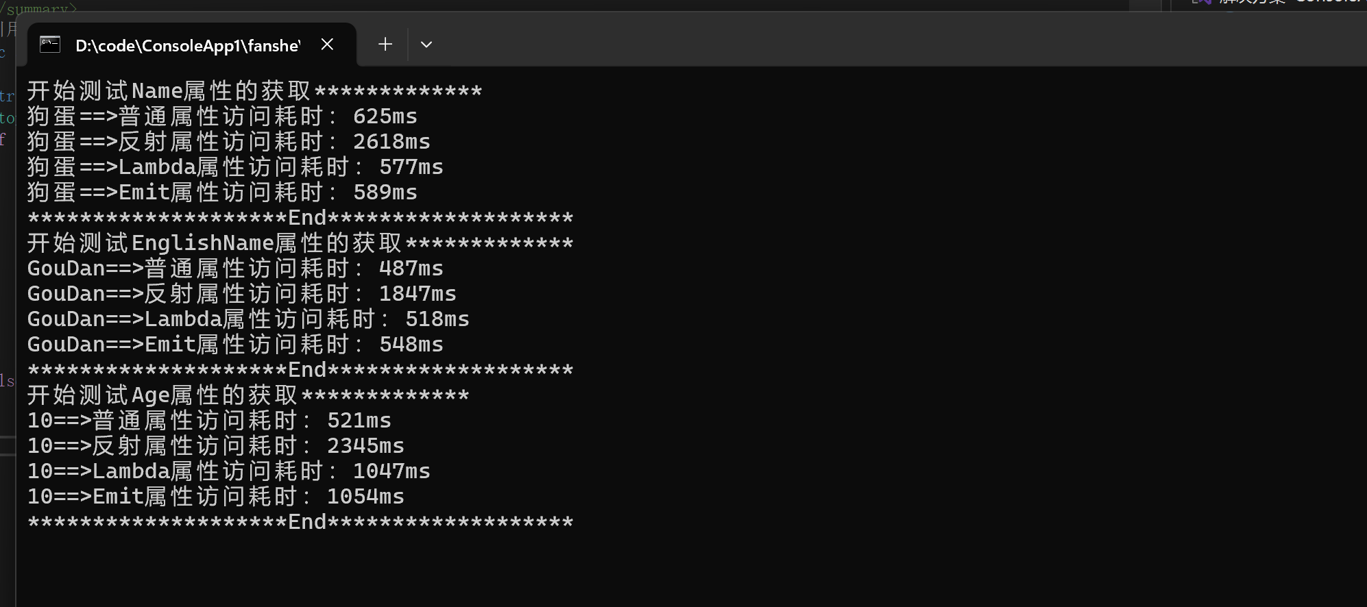 Console.WriteLine($"{result}==>反射属性访问耗时:{stopwatch.ElapsedMilliseconds}ms");