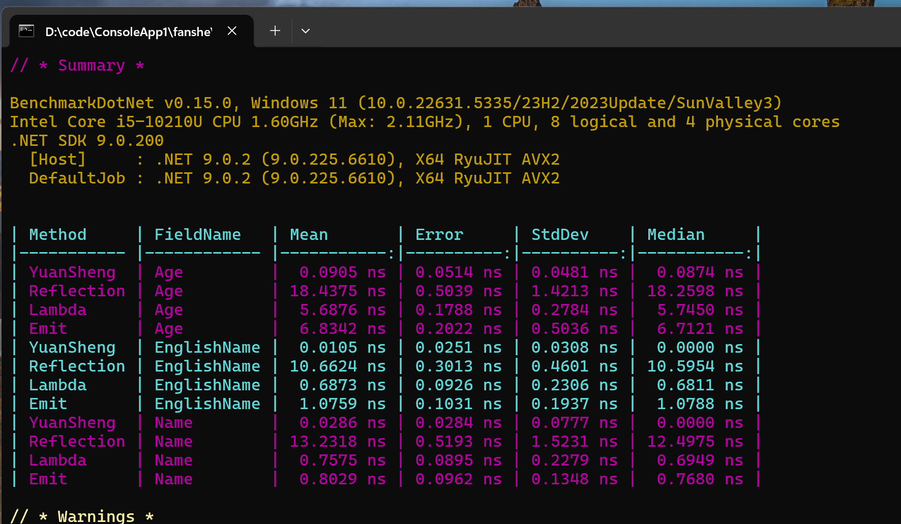 结果:直接访问(YuanSheng) > 表达式树(Lambda) ≈ Emit > 反射(Reflection)